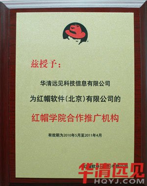 2010年5月18日,華清遠見教育集團與紅帽大中華區關于Linux開發人才培養的合作簽約儀式在北京世紀財富中心紅帽公司總部正式舉行,紅帽大中華區培訓服務總監黃建耀、華清遠見教育集團總裁季久峰、紅帽大中華區渠道經理李惠敏及華清遠見教育集團副總裁賈燕楓等共同出席了本次簽約儀式。