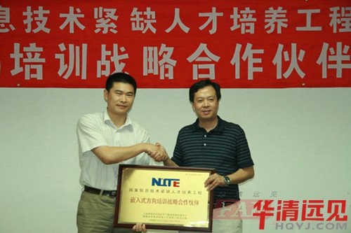 2009年7月31日,華清遠見嵌入式培訓中心與工業(yè)和信息化部軟件與集成電路促進中心(簡稱CSIP)簽署了合作協(xié)議,并舉行了隆重的合作伙伴授牌儀式。工業(yè)和信息化部軟件與集成電路促進中心副主任邱善勤博士、教育培訓部吳宏雷主任、華清遠見總裁季久峰及相關(guān)負責人出席了此次授牌儀式。自此,華清遠見正式成為信息技術(shù)緊缺人才培養(yǎng)工程(National Information Technology Education Project,簡稱NITE)培訓戰(zhàn)略合作伙伴。憑借多年在嵌入式專業(yè)領(lǐng)域內(nèi)的卓越貢獻和權(quán)威地位,華清遠見也成為了首家獲NITE授權(quán)的嵌入式方向培訓機構(gòu)。
