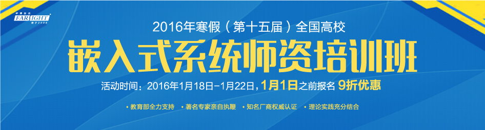 為進一步推動高等院校嵌入式系統及移動開發教學工作的開展,加強各高等院校同行間的交流,培養嵌入式及移動開發的師資力量,在工信部軟件與集成電路促進中心和教育部教育管理信息中心指導下,將由華清遠見教育科技集團主辦、軟件行業協會嵌入式系統分會協辦,并聯手ARM、飛思卡爾、Atmel共同舉辦“2016(第十五屆)全國高校嵌入式系統師資培訓班”。針對目前高校嵌入式及移動開發專業師資水平的現實狀況,本次師資班強化了針對項目實戰環節以及新的Android系統開發等行業新技術的講解,并基于新的Cortex-A系列(A8、A9)教學平臺進行實踐訓練,旨在培養更多合格的嵌入式及移動開發教師,將嵌入式及移動開發的新實訓內容帶入學校課堂。華清遠見教育科技集團作為的嵌入式培訓專業機構,承擔此次培訓任務。 往屆報道: 2015第十四屆 2015第十三屆 2014第十二屆 2014第十一屆 2013第十屆 2012第九屆 2011第八屆 2011第七屆 2010第六屆 2010第五屆 2009第四屆 2008第三屆 2007第二屆 2006第一屆 |