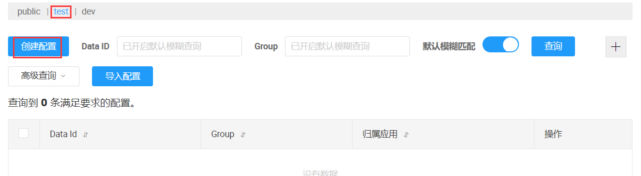 我們創(chuàng)建命名空間, 通過(guò)切換對(duì)應(yīng)的命名空間,然后再通過(guò)Group和DataID來(lái)進(jìn)行切換,即可以按照Namespace+Group+DataId來(lái)切換使用不同的配置文件。