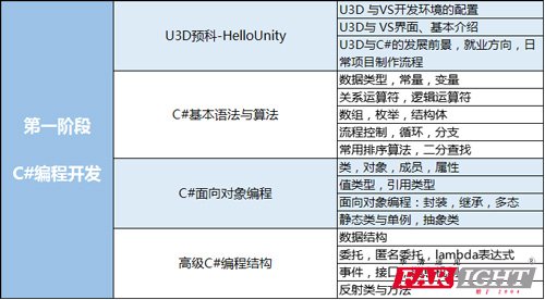 2、階段目標:全面學習C#編程語言;掌握Unity中的項目架構、項目規(guī)范;掌握企業(yè)級的代碼管理控制。