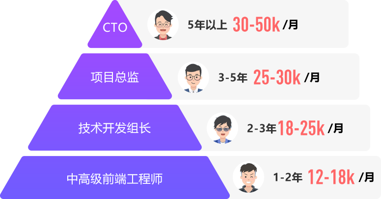 • 醫療、游戲、教育、電商、交通、文化等任何行業都需要前端來實現頁面展示,企業用人剛需,技術不可替代