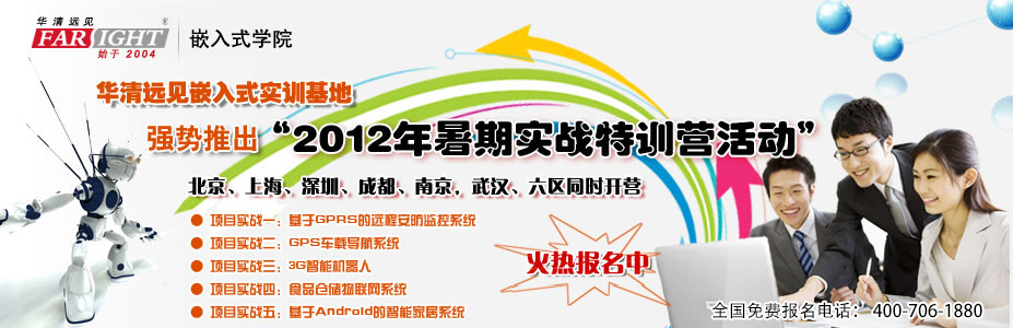 4個月集中、強化訓(xùn)練,一人一機一板,實戰(zhàn)項目體驗,在嵌入式行業(yè)資深技術(shù)經(jīng)理的帶領(lǐng)下,依照嵌入式開發(fā)標(biāo)準工作流程及工作規(guī)范,感受嵌入式開發(fā)人員真實工作狀態(tài),迅速提高你的就業(yè)競爭力,搶占先機,成為IT行業(yè)中嵌入式職場新貴!