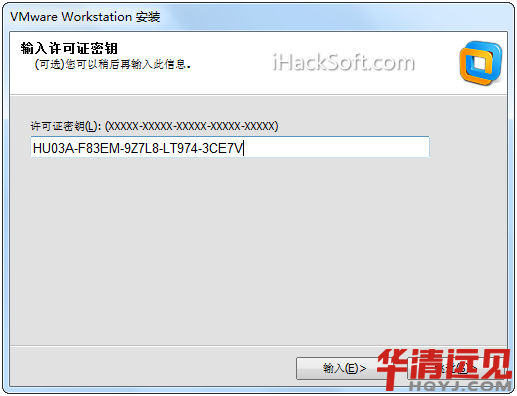 后一步要求輸入許可證密鑰,本站提供親測可用的注冊密鑰,授權形式為批量,并且永不過期,即永久激活,注冊碼地址://www.ihacksoft.com/vmware-workstation-10-0.html
