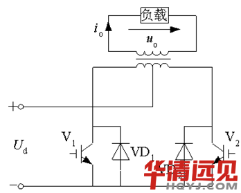 V1和V2柵極信號(hào)在一周期內(nèi)各半周正偏、半周反偏,兩者互補(bǔ),輸出電壓uo為矩形波,幅值為Um=Ud/2 。