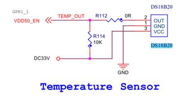 DS18B20 有三個引腳。根據原理圖可知,DS18B20采用了外部供電的連接方式,而DQ引腳上拉10k電阻。DQ引腳連接在4412芯片的GPK1_1 引腳上面。