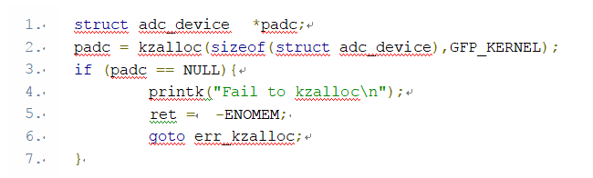 在分配 adc 結構體時,使用的是 kzalloc 函數,具體實現如下: