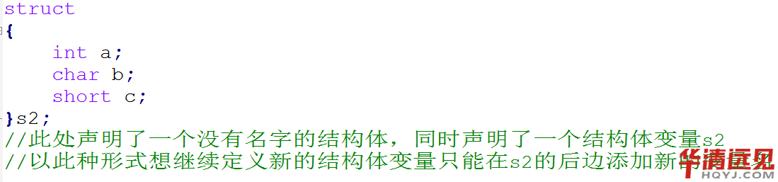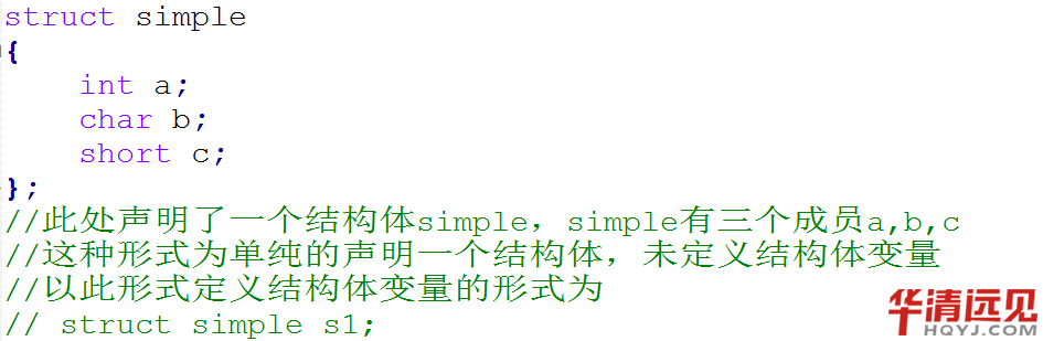 這里struct為結構體關鍵字,一般情況下,結構體名、成員列表和結構體變量名列表這三部分至少要出現2個,以示例解釋: