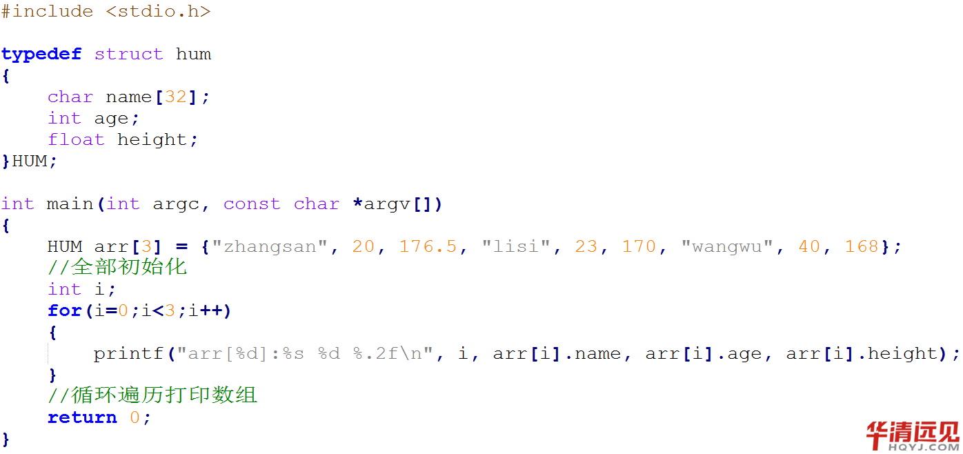 結構體數組的使用方法就是普通類型數組的使用方式與結構體變量的使用方式相結合,沒有難度,直接上代碼: