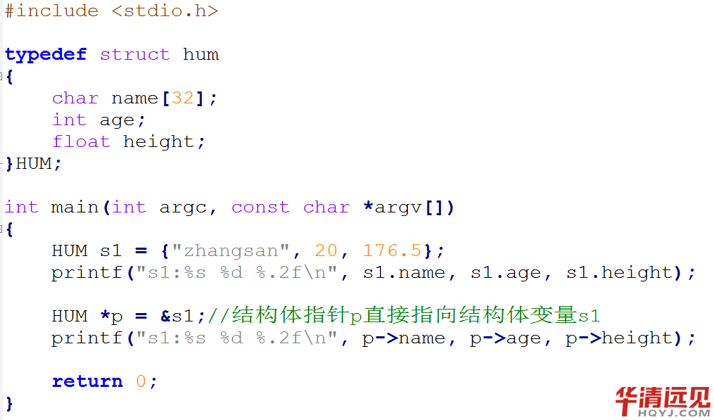 結構體指針也可以直接引用結構體內的成員,但是格式與變量引用不同,不用”.”而是用”->”引用。
