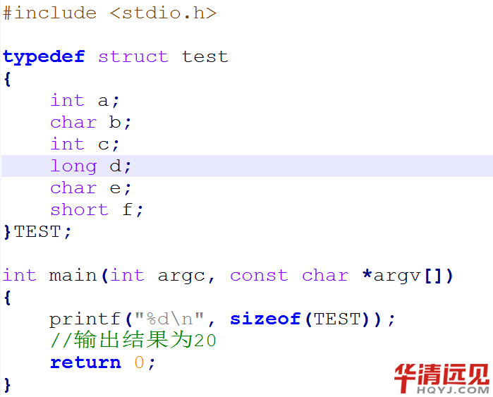 結構體中有一個long類型,兩個char類型,兩個int類型成員,一個short類型成員,如果只按照這幾個成員大小相加,結構體大小應該是 4*3+1*2+2=16 個字節大小。但實際輸出結果是20個字節大小。
