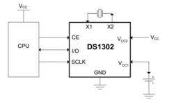 在DS1302的X1,X2管腳上可以鏈接一個32,768kHz的晶振。