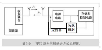 由讀寫器傳到應(yīng)答器的功率 的一部分被天線反射,反射功率P2經(jīng)自由空間后返回讀寫器,被讀寫器天線接收。接收信號(hào)經(jīng)收發(fā)耦合器電路傳輸?shù)阶x寫器的接收通道,被放大后經(jīng)處理電路獲得有用信息。