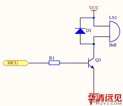 MCU通過控制三極管的通斷來給蜂鳴器供電。如果是有源蜂鳴器,使三極管導通即可讓蜂鳴器鳴叫;如果是無源蜂鳴器,需要MCU控制三極管按照一定頻率通斷即可使蜂鳴器鳴叫。