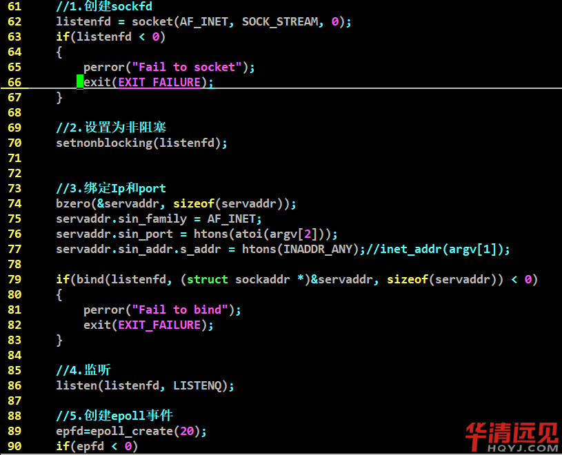 1)調(diào)用epoll_create()建立一個epoll對象(在epoll文件系統(tǒng)中為這個句柄對象分配資源)