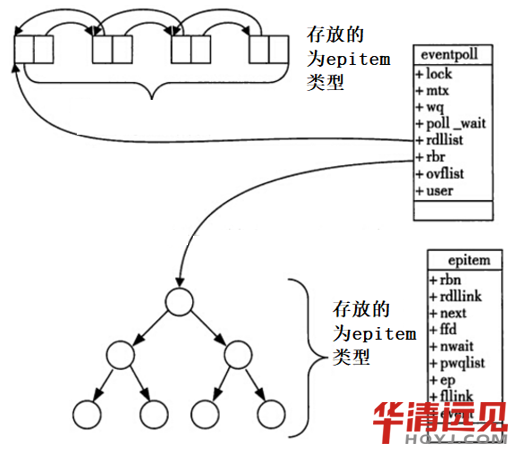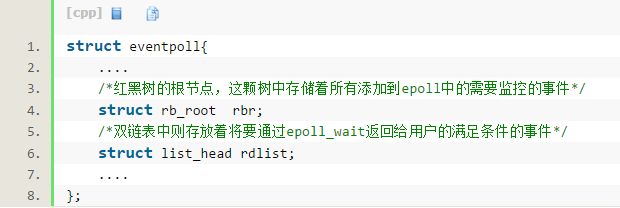 叫做eventpoll類型的結(jié)構(gòu)體與之對應(yīng),該結(jié)構(gòu)體中主要有兩個主要的成員,一個是