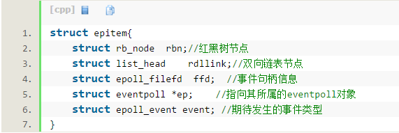 在epoll中,對于每一個事件,都會建立一個epitem結(jié)構(gòu)體,如下所示: