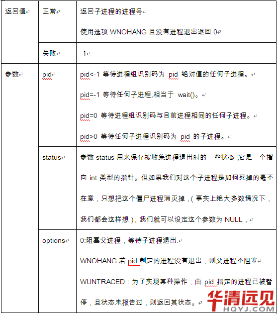 wait: 父進程調(diào)用等待任一子進程退出。等同于waitpid(-1, &status, 0);