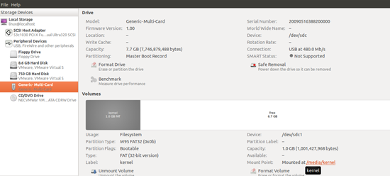 打開應用程序 application -> accessories ->Disk Unit 這個工具 ,插上sd卡后, 會顯示sd的容量信息,如下圖: