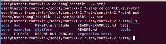 打開VMware虛擬軟件,打開Ubuntu鏡像,進入Vi下的contiki-2.7-stm目錄文件夾,執行ls命令。