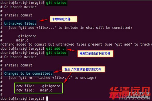 從提示信息我們可以看到,main.c a.out 都是"未被跟蹤的文件",所謂”未被跟蹤的文件“即,還沒有納入git管理的文件