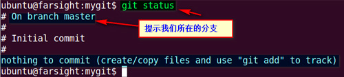 我們進入mygit目錄,此時我們可以先查看一下當前的倉庫狀態信息: