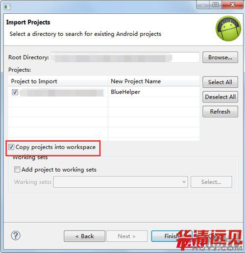 然后,導入光盤資料中的“BlueHelper”工程,勾選下圖中的選項。