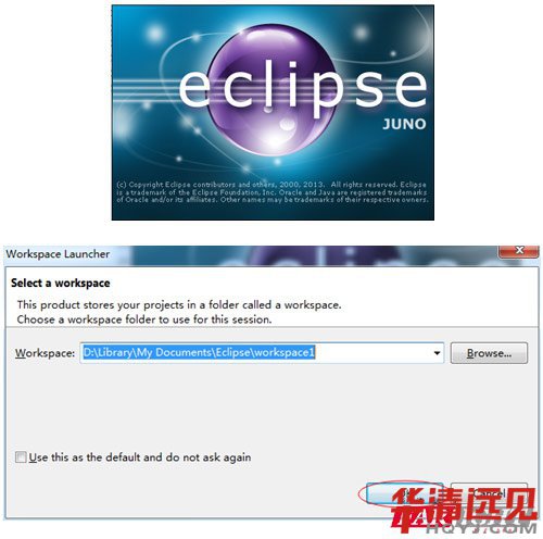 運行解壓目錄下的eclipse\eclipse.exe,為自己選擇一個工作目錄Workspace,不要有中文路徑,不選擇默認也可以。