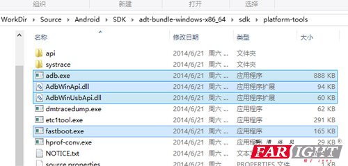 注意:如果在調試開發板的時候,出現ADB連接不上的問題(已知華清遠見FSPAD723開源平板),可以試著替換Android SDK的ADB工具(把光盤\Android應用開發環境\ADB\ADB1.0.26\下的4個文件拷貝到用戶ADT解壓目錄下的sdk\platform-tools中)