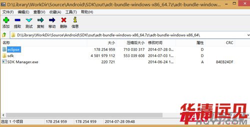 JDK安裝成功后,使用軟件解壓ADT目錄下的adt-bundle-windows-x86.7z(32bit)或者adt-bundle-windows-x86_64.7z(64bit)。