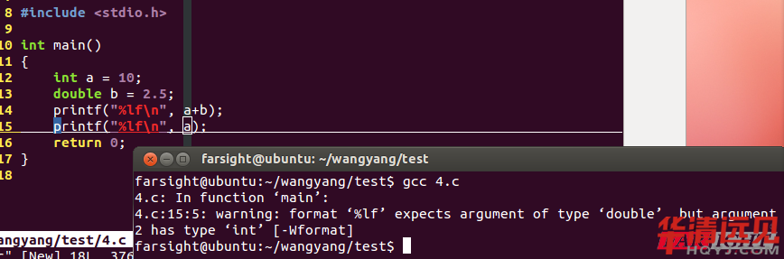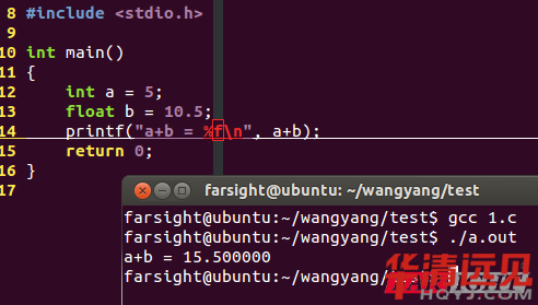 我們看到代碼運行的結(jié)果a+b的結(jié)果為浮點數(shù),大家可以試一下,14行代碼如果改成%d的話,編譯時就會有類型不匹配的警告,所以int類型與float類型在進行混合運算的時候,都轉(zhuǎn)換成了double類型。