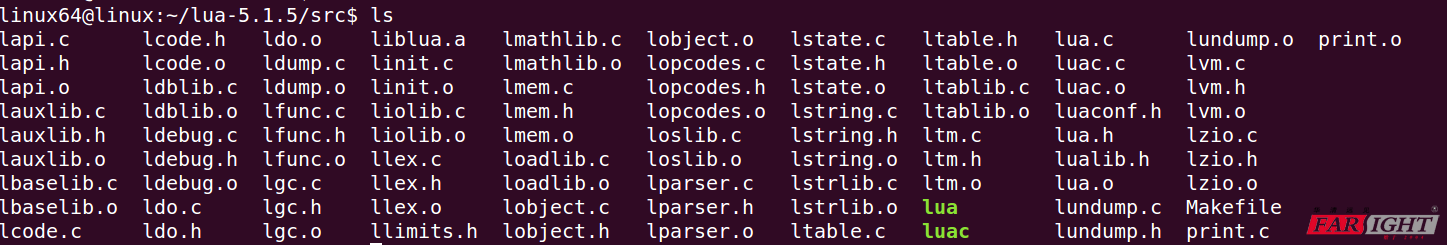 可以看到此時lua解釋器已經生成,可以將解釋器拷貝到/usr/bin 目錄下 或者做一個軟連接