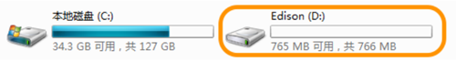 一旦成功連接,Edison正常啟動,在windows中會出現(xiàn)一個盤符。