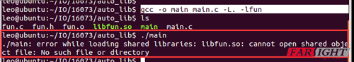 gcc main.c -o main -lfun -L ../auto_lib/ 庫在上一級目錄的auto_lib路徑下面