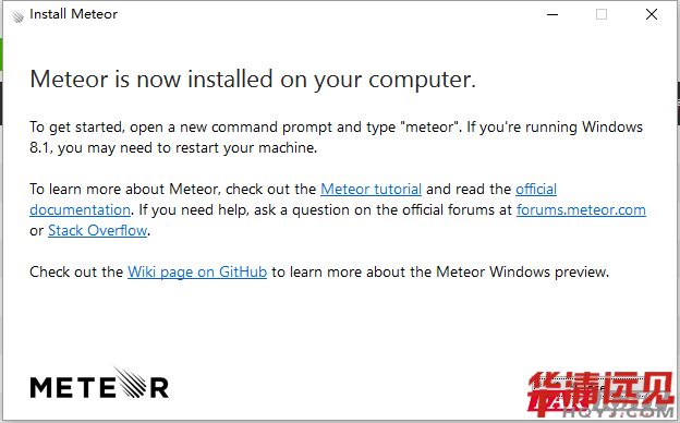 可以從meteor官網下載官方Meteor安裝程序, 下載過程可能有點慢。