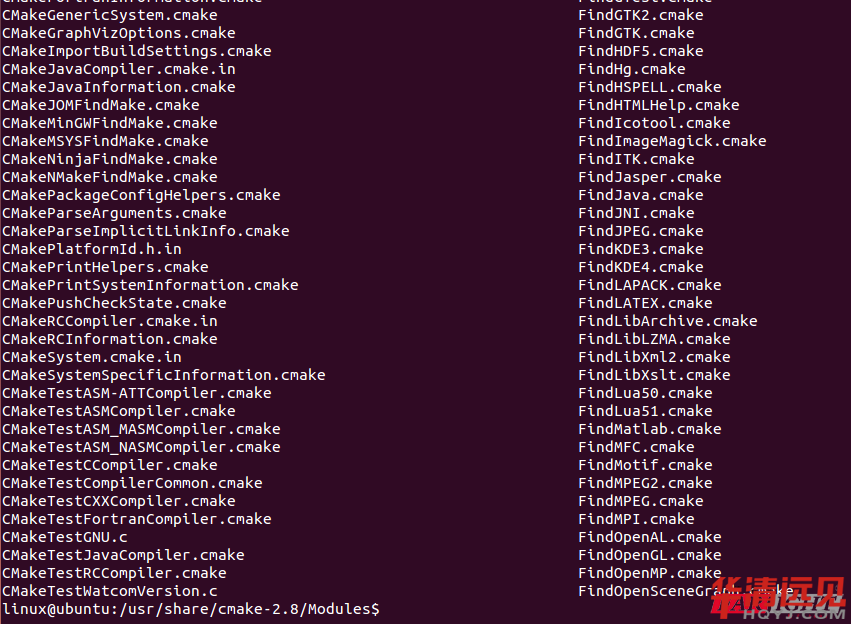 在cmake安裝目錄中,一般有很多cmake模塊讓我們在編寫CmakeLists.txt 的時候導入進去,具體內容如下: