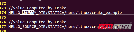 該句話中,隱式的定義了兩個變量,下面是CMakeCache.txt里面的文件內容,里面有各種剛剛系統配置的變量內容,下面我們查看兩個隱藏變量的內容: