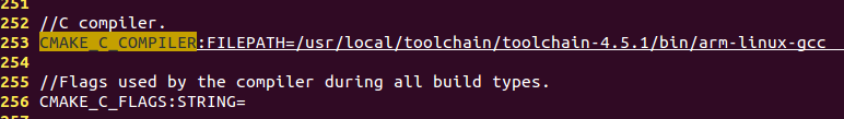 3. 許多配置是可以在CMakeCache.txt里面修改的,如我們想更改編譯工具,改成arm-linux-gcc。
