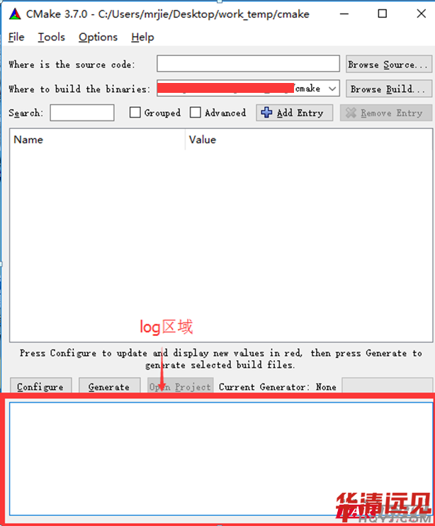 而cmake的gui程序則會在log里顯示錯誤信息。如下圖: