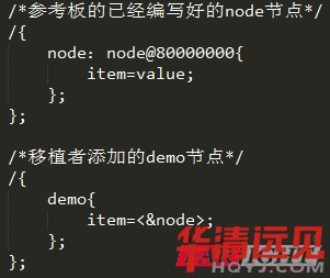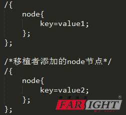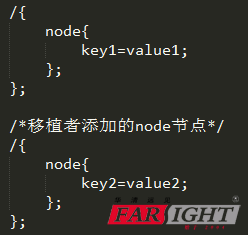 移植者在根節(jié)點中添加一個node節(jié)點,節(jié)點中的內(nèi)容與上面的節(jié)點內(nèi)容是不同,此時需要合并,合并完成結果如下: