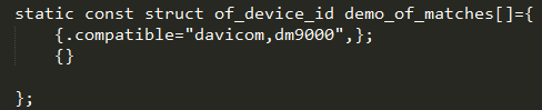 在設備樹中compatible="davicom,dm9000";需要與驅(qū)動代碼中的.compatible匹配。