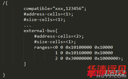 ranges:有些設備是有片選的,所以需要描述片選和片選的偏移量,在地址說明的時候還要說明地址映射范圍。