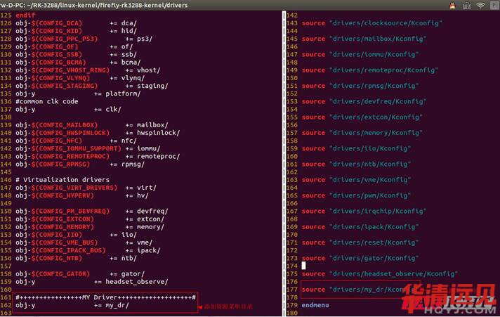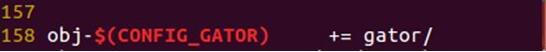 如上圖,即為drivers目錄下的Makefile文件和Kconfig文件了。還是一樣的,在Makefile文件中添加洗衣歌資源的菜單目錄路徑;而在Kconfig文件中,還是添加此目錄下的資源的Kconfig文件的路徑。就這樣配合使用。而且,基本上在這兩個文檔中,可以直接看到很多的參考示例,直接參考即可!其實有一個疑問是,在Makefile文件中,比如第158行,如下圖: