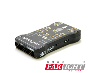 兼容 Spektrum DSM / DSM2 / DSM-XÂ? 衛星接收機輸入: 允許使用 Specktrum 遙控接收機,對于 Spektrum DSM, DSM2或者 DSMX 衛星接收機,直接接在 SPKT/DSM 接口。 DSM 是Digital Spread Spectrum Modulation 的縮寫,一共有三代: DSM、 DSM2、 DSMX。常見的是 DSM2, JR 的遙控器和 Spectrum 的遙控器都支持。該協議也是一種串行協議,但是比 S.BUS 更加通用,使用的標準串口定義,所以市面上兼容接收機更加便宜,兼容的設備也更多,比如電直的三軸陀螺 VBar 就可以直接接受 DSM2信號。