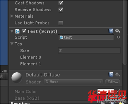 上面的圖說明的是: 用戶能夠通過操作Unity的環(huán)境菜單生成C#腳本文件;反之,用戶又可以通過修改腳本文件來改動Inspector面板的布局。比如, 正如圖中顯示的腳本文件中增加了Test類,在Inspector面板中有相應(yīng)的更新顯示。此外,如果用戶對缺省的面板風(fēng)格不滿意,用戶還能夠通過在腳本 文件中繼承Editor類的方法對監(jiān)視面板進(jìn)行大幅度的改動。我們能夠看到,這里充分體現(xiàn)了反向工程的設(shè)計思路。