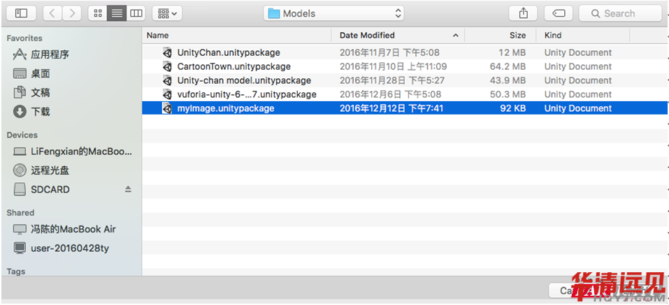 比如說,Vuforia是一款由Qualcomm推出的AR應(yīng)用開發(fā)工具,能將現(xiàn)實世界物體轉(zhuǎn)變?yōu)榛芋w驗的擴(kuò)增實境平臺,旨在幫助開發(fā)者打造全新級別的真實 世界物品與虛擬物品的互動。Vuforia SDK可以通過官方網(wǎng)站進(jìn)行下載(圖中的vuforia-unity-6-0-117.unitypackage名稱),開發(fā)者能夠在Unity的 環(huán)境下,通過下圖中的菜單彈出窗口將該軟件包導(dǎo)入項目選項卡窗口中去。與此同時,也將解壓后的很多資源文件導(dǎo)入了項目。