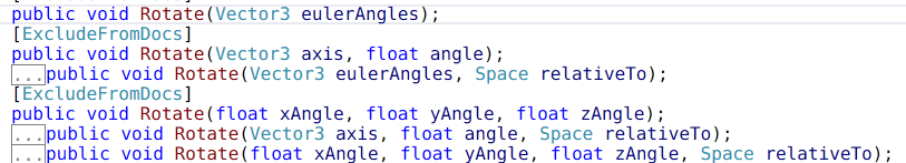 Rotate有六個重載方法,根據參數的命名,很容易知道每個參數的意義。