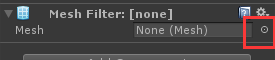 在上面創建的GameObject的Inspector視圖中有個Add Component按鈕,點擊此按鈕添加Mesh Filter然后選點擊Mesh后面的紅框選中的按鈕,接下來