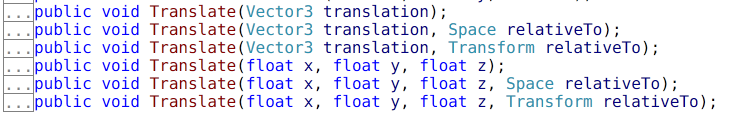同樣位置(Position)移動的方法Translate也有類似的重載。