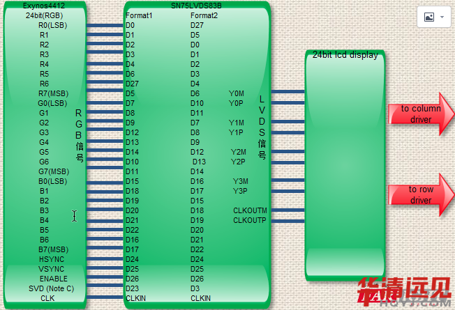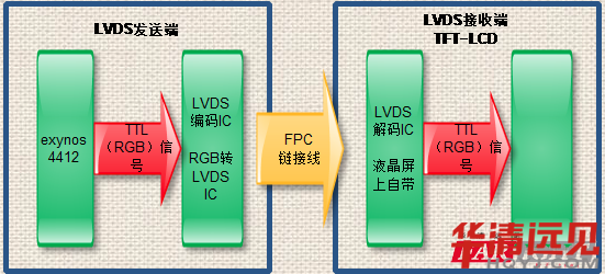 其實(shí)就是:把三星芯片輸出的TTL(RGB)信號(hào)轉(zhuǎn)換成LVDS差分信號(hào)輸出的LCD接收端。